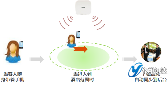 銳捷認證系統提供標準的接口,可以將客人的上線信息自動同步到酒店的后臺,后臺可通知門童、前臺、大堂經理,某某客人來了。