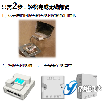 銳捷墻面式 AP,86面板盒大小,只需要替換掉原有的網絡接口面板,不打洞、不施工,不需要停止營業。