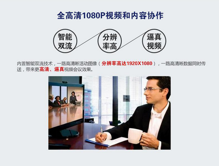時尚輕薄系列T3產品特性:全高清1080P分辨率和流暢度;豐富的音視頻接口,靈活鏈接HDMI、VGA、CVBS等多種需求;高清多媒體內容共享,從視頻到幻燈片無所不包通信協議 SIP協議,兼容H 323協議視頻編解碼