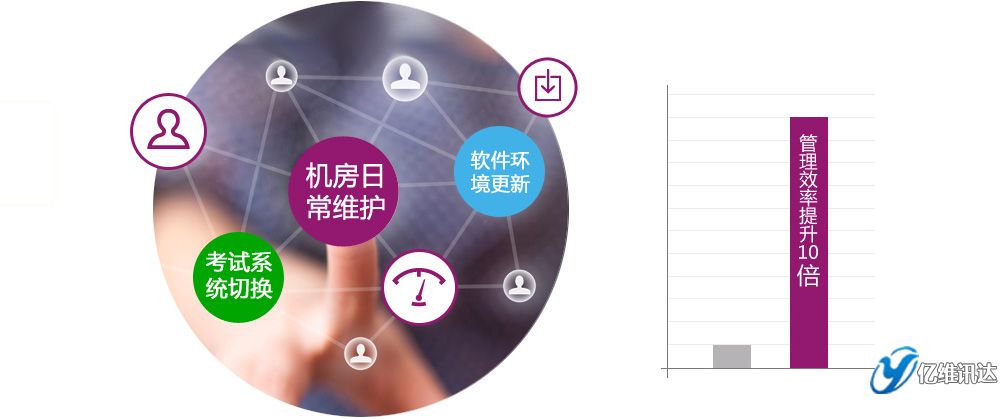 采用集中管理的方式,將考試系統切換、軟件環境更新、機房日常維護等時間至少縮短了90%。
